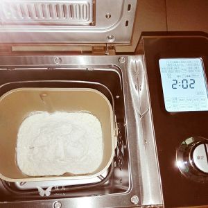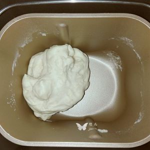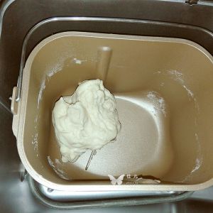 揉好的面团留着面包桶里发酵,发酵至2倍大。