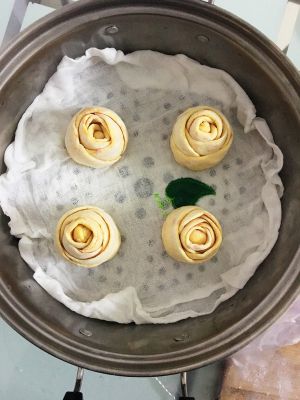 将铺好的面饼卷起来,冷水上蒸笼,烧开后蒸23分钟。