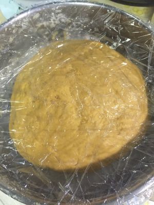 现在可以把所有材料混在一起,变成面团状,在揉的过程中还挺累的,哈,可以锻炼手臂了