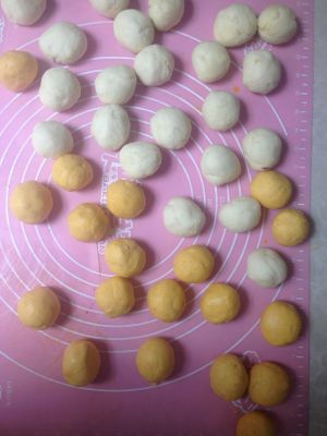 2面团发酵至两倍大时取出,重新排气、揉圆,松弛5分钟,然后揉成30克一个的小面团。