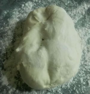 酵母+温水+面粉揉成面团于温暖处醒发,待膨胀成2倍左右大小(蜂窝状)后,加一点点面粉于案板上继续揉至切面光滑平整无气泡