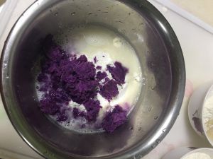 先把紫薯煮熟,压成泥