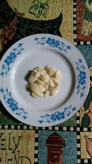 将各种调料放入碗中搅拌均匀,备用,蒜切沫。