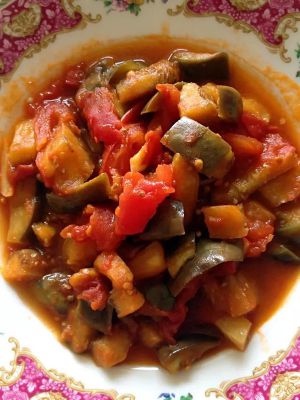 西红柿去皮切块;茄子洗净切块或者条(看自己的爱好)ps.茄子带皮有营养,如果怕皮影响口感那就去皮也很赞;蒜切片备用