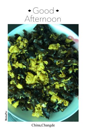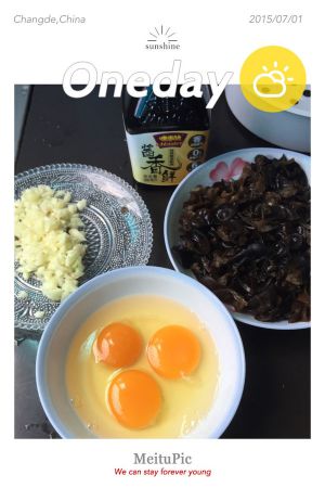 放油,加入鸡蛋炒匀盛出备用。接着又放油,爆香蒜末,加入木耳翻炒片刻,然后放盐调味!