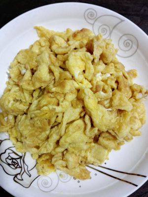 再倒入先炒好的鸡蛋,放料酒,糖,盐爆炒几下