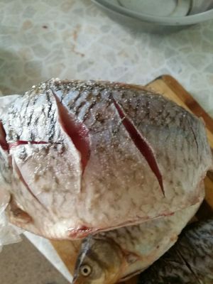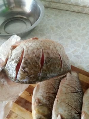 1.清洗干净鱼后,身上划刀(这样好入味)