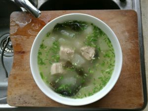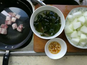 文火煨50分钟,转大火同时放入冬瓜煮开。此时要开盖,否此冬瓜易烂。 水滚关火出锅。