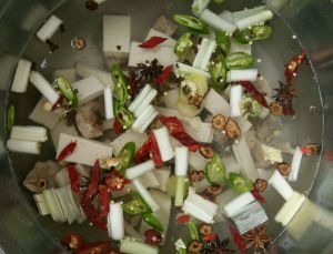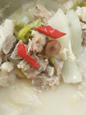把排骨和豆腐放进清水中,加入葱、姜、辣椒、八角、红枣片、枸杞、鸡精、盐。大火煮30分钟,改为中火煮20分钟,然后加入冬瓜,小火慢炖20分钟,出锅前放入各类调料。