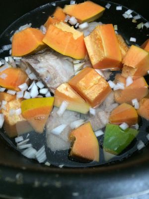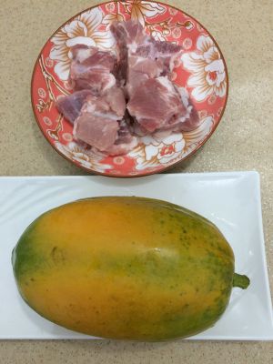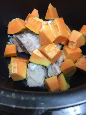 将排骨、木瓜、姜和䓤放入电压力锅中