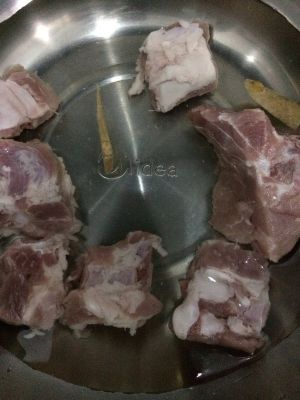 锅里放入凉水,一次加够,排骨下锅。放入葱姜花椒大料一点料酒。大火烧开。