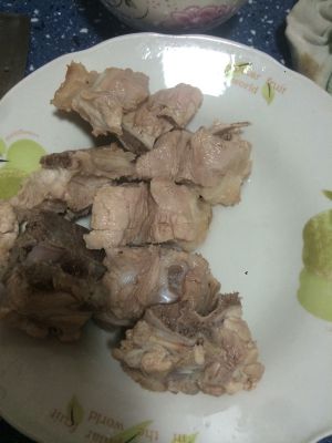 把排骨倒入开水中,焯水,捞出,用凉水洗干净