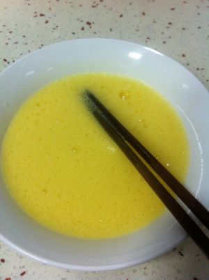 下油锅煎鸡蛋液,煎至两面金黄,盛起
