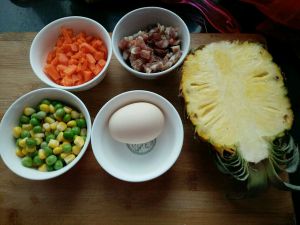 备好材料,青豆,玉米,鸡蛋,菠萝,香肠
