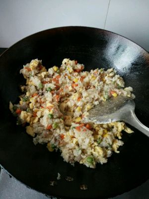加入米饭煸炒至金黄