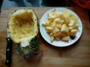 把凤梨肉挖出来备用,凤梨壳用来盛饭