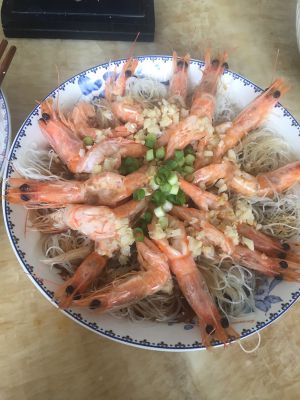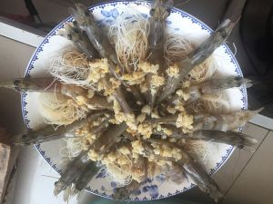 粉丝在冷水中泡20至30分钟,铺在盘底虾放在粉丝上,各位看官,由于之前没拍照,装盘后才拍照请凑合看吧