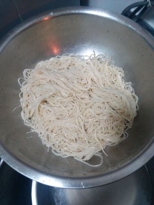 面条煮至8层熟捞出过下热水,放点麻油拌匀备用