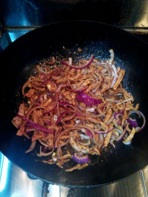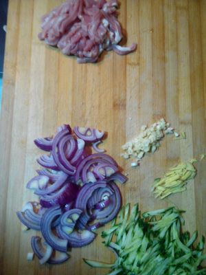 洋葱洗净取半个切丝,肉洗净切肉丝。