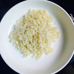 圆面条过水,后捞起,放入冷水中,在沥干水分,可以弄点油,免得粘一起了