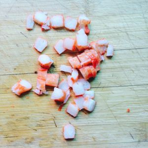 韭菜切段,胡萝卜擦丝(切丝也可),火腿切片,葱花切小段。