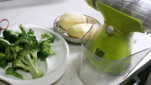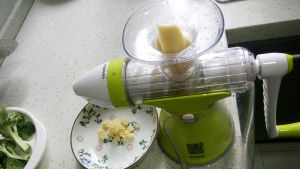 放入果语原汁机使用冰淇淋头搅碎土豆块