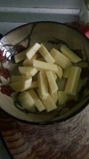 先把土豆煮熟,用保鲜袋装好,用擀面棒擀成糕狀