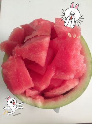 然后就不用管啦 ~ 吃个西瓜降降温(当然过一会还是要看下的)让它自己慢慢收汁吧~ 避暑神器乱入 炎热的夏天必吃的西瓜!