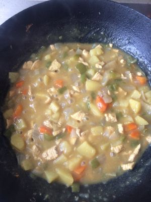 翻炒差不多时,加半勺水,以及两块咖喱!(拍照遗漏了)