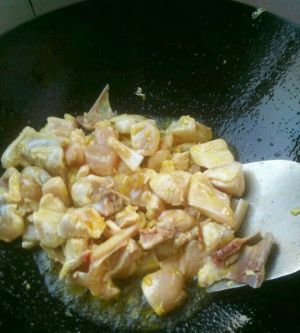 油热后放入鸡肉翻炒下