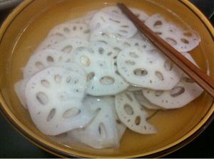 1,藕片焯一下易熟,用冷水泡一下很脆