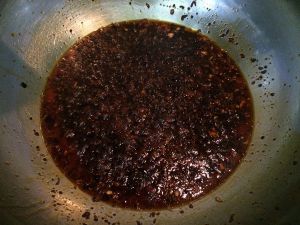 锅微热后倒入油(油要比平时炒菜稍微多一点),然后倒入蒜和葱,还有适量麻辣香锅调料,慢慢翻炒至金黄色