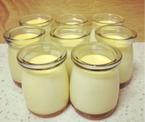 过筛后的牛奶液就可以倒进布丁杯了,七分满即可