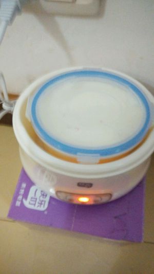将搅拌均匀的牛奶倒入酸奶机中 注意了在倒入之前酸奶机一定要用开水高温消毒噢