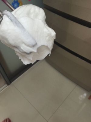 动物性淡奶油打至7分发,打到奶油滴下有明显纹路,又立马消失de状态,瓦数大的打蛋器更应格外注意,随时查看状态。