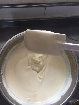 消毒后得蛋黄分多次加入到乳霜状的马斯卡彭当中,搅拌均匀。