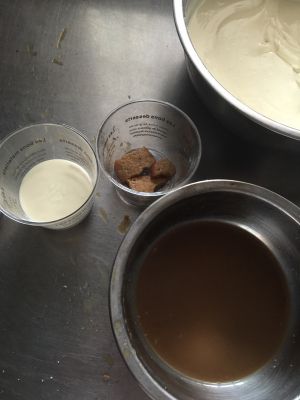 奶油奶酪打发,蛋黄加糖.奶.朗姆酒打匀,