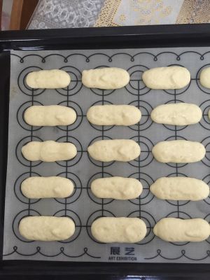 装入裱花袋,挤成条状,180度15-20分钟,烤至边缘上色,关火后焖3分钟。