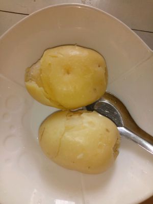 全部料在一起搅拌均匀,然后加入适量凉白开,继续搅拌,直到水快要淹没土豆