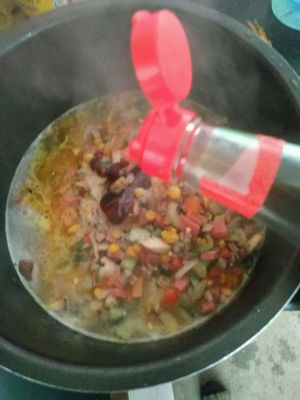 然后放入淹过菜的水即可,不能放多了,除非你的米很多,不然煮出来就是一锅粥。