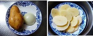 把土豆洗净、去皮切片,上锅蒸熟备用。