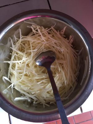 土豆刨成丝,但千万别洗哦