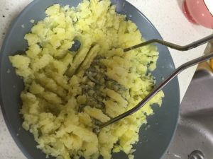 土豆去皮切块,大火蒸10到20分钟左右,蒸好的土豆趁热压成泥