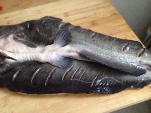 腌制好的鱼在鱼身上切几刀好入味。(之前就该切的)