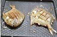 电饼铛预热190度后倒入一大勺油,放入腌制好的鱼煎烤至两面焦黄
