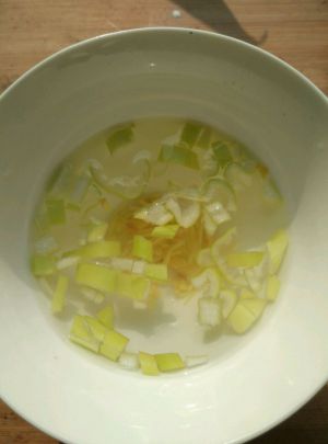 葱白切丝,黄瓜切丝,摆盘里备用。姜磨成汁。