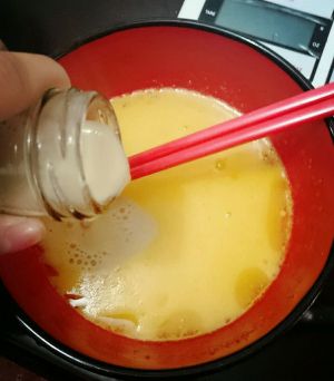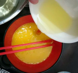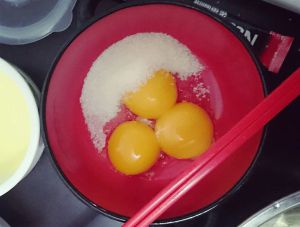 鸡蛋蛋清蛋黄分离,蛋黄和20g白糖混合。