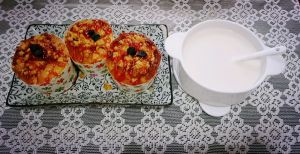 刚才我做奶茶因为30ml实在太少太麻烦所以我做的大的!(230ml开水冲泡红茶加20ml奶精和5g咖啡摇匀)或者(230ml牛奶和红茶包煮热,加5g咖啡摇匀)。鸳鸯奶茶这里没加糖因为蛋糕里面有。单独做加10g糖合适!剩下的奶茶加了糖和麦片煮好配蛋糕合适!