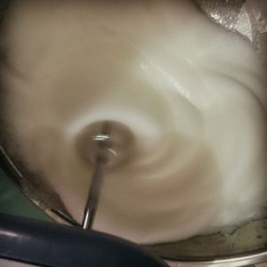 中速打发至泡沫浓稠加第二个三分之一白糖