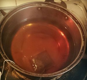 牛奶入锅煮,红茶泡开放茶漏,放到牛奶里一起煮,不时搅拌